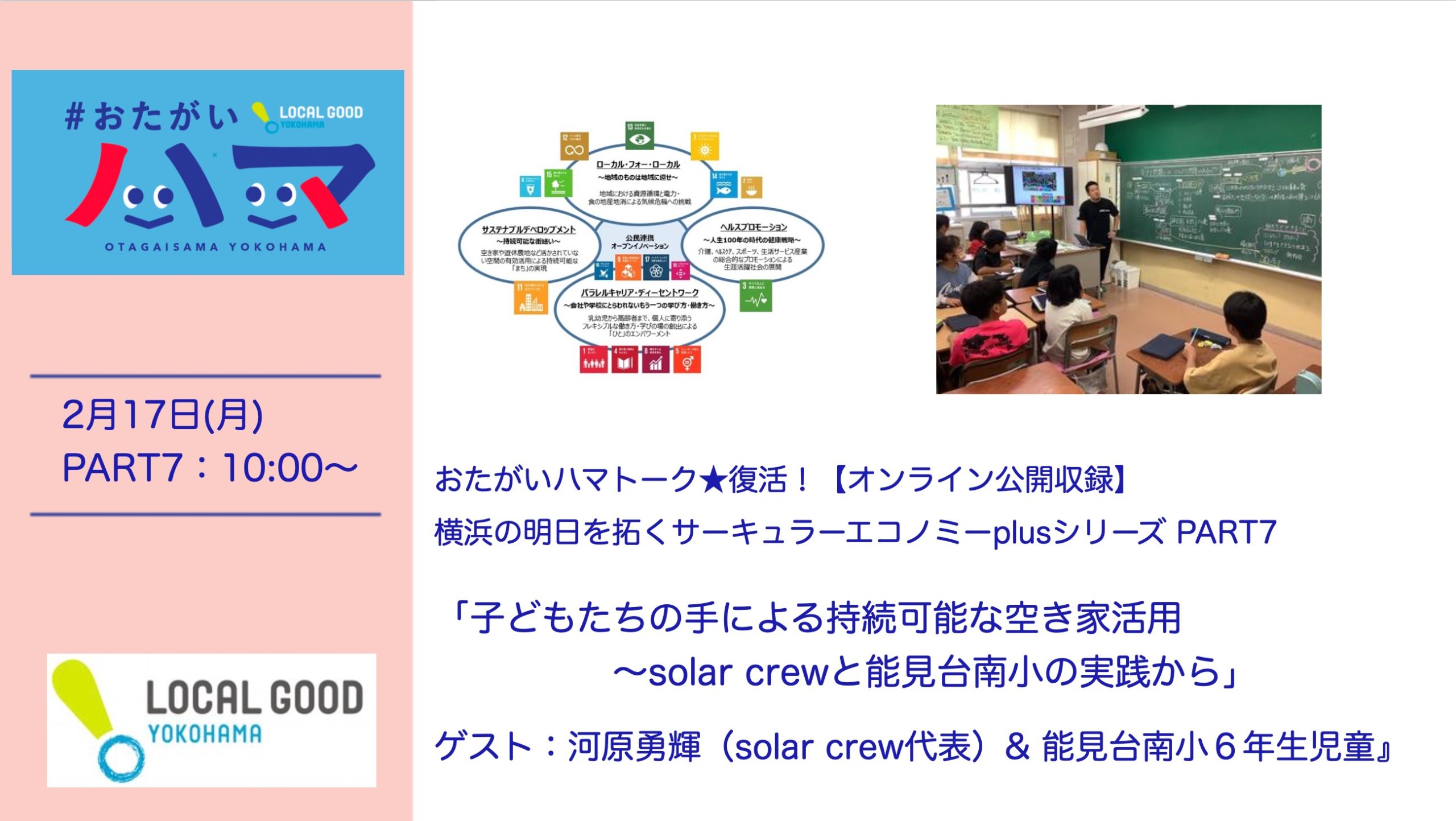 2/17「子どもたちの手による持続可能な空き家活用~solar crewと能見台南小の実践から」 ゲスト:河原勇輝さん(solar crew代表)& 能見台南小6年生児童
